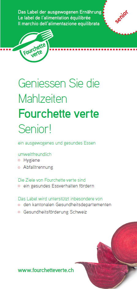 Die Labels Fourchette verte und Fourchette verte - Ama terra Tagesstätten Senior, fördern eine ausgewogene und nachhaltige Ernährung für ältere Menschen, die in Alters- und Pflegeheimen leben.